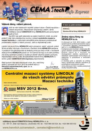 V prípade záujmu o CEMA-TECH Info Express nám zašlite na e-mail: cema-tech@hennlich.cz Do predmetu prosím uveďte "Mám záujem o zasielanie CEMA-TECH Info Expressu".