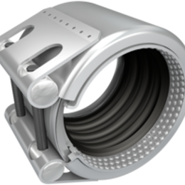 - Potrubná spojka je dodávaná vrátane nerezovej vnútornej vložky chrániacej gumovú manžetu proti poškodeniu ostrými koncami potrubia, proti podtlaku a proti abrazívnemu médiu.
