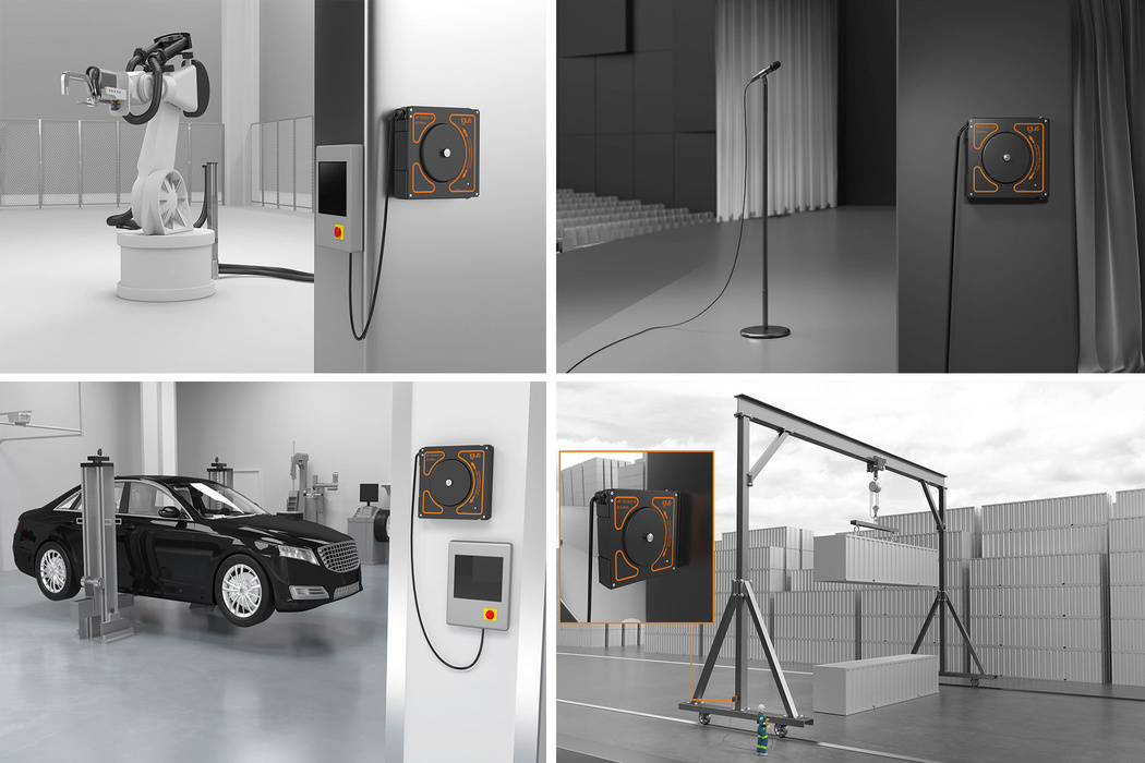 E-spool flex 2.0 je nová verzia káblového bubnu bez zberného krúžku. Možno ho použiť pre káble s priemerom od 5 do 15 mm. Kábel je bezpečne vedený priechodkou, aby bylo zaistné správne navinutie.
