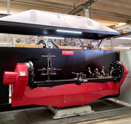 - Špičkové pohony Sumitomo: Obe upínacie hlavy sú motorizované ako prídavné osi robota. Používame excentrické prevodovky Sumitomo s nulovou vôľou (zero-backlash), ktoré sú úplne bezúdržbové a zaručujú extrémnu presnosť polohovania po celú dobu životnosti.