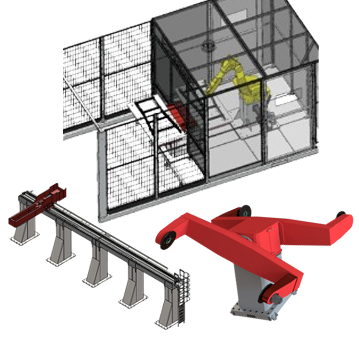 - Robotizované zváracie bunky - Kompletné robotizované zváracie pracoviská navrhované na mieru. Riešenia zahŕňajú roboty, polohovacie systémy, bezpečnostné prvky aj integráciu do existujúcich výrobných liniek.