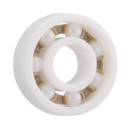 Radiálne guľôčkové ložiská xiros® pozostávajú z vysoko výkonných plastov, v ktorých sa v klietke pohybujú guľôčky z nehrdzavejúcej ocele alebo skla.