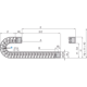 | Vnitřní šířky Bi: 40 až 300 mm Poloměry ohybu R: 63 až 200 mm Rozteč: 27,8 mm na článek = 36 článků / m |