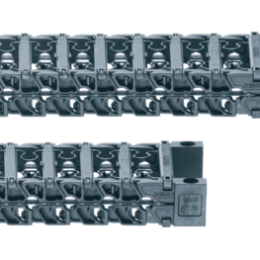Systém energetického řetězu T3 v sobě kombinuje hladký provoz, nízkou hlučnost, jednoduchou montáž a ekonomičnost. Pásy bočnic, které se do sebe zacvaknou, nahrazují tradiční spojení pomocí čepu a díry a brání relativnímu pohybu. mezi klouby. Díky tomu nedochází prakticky k žádnému opotřebení nebo otěru (čisté prostory/clean room).