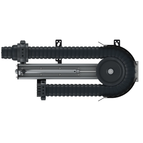 Ak sa chcete vyhnúť previsom na ramene robota a plynule upravovať retrakčnú silu, potom je pneumatický systém RSP (Retrakčný Systém s Pneumatickými prvkami) presne to, čo potrebujete. Pneumatický valec slúži pre plynulé nastavenie potrebnej retrakčnej sily. Retrakcia až do 780 mm umožňuje bezpečné vedenie káblov a hadíc. Či už ide o menšiu alebo väčšiu výplň energetickej reťaze, dlhé alebo krátke rameno robota – retrakčný systém RSP sa prispôsobí každej aplikácii.