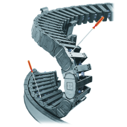 Produktový rad energetických reťazí twisterchain® ponúka široké možnosti pre rotačné pohyby a je dostupný v štyroch veľkostiach. Modulárne riešenie v šírke aj polomere umožňuje vysokú flexibilitu v aplikáciách, kde sú požadované kruhové a špirálové pohyby až do 360° a viac, pri vysokom zaťažení a plynulej prevádzke.