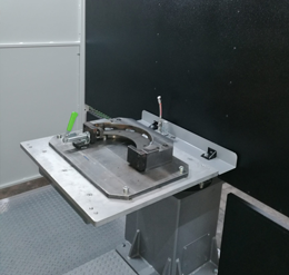 Integrované pracovné prostredie: Bunka je kompletne uzavretá, osvetlená LED technológiou a vybavená stropným odsávacím systémom s vývodmi pre centrálne odsávanie splodín.