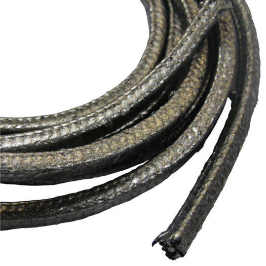 Pletená upchávková šnúra z uhlíkových vlákien, zosilnených inconelovým vláknom, na povrchu chránených kvalitným mazivom.